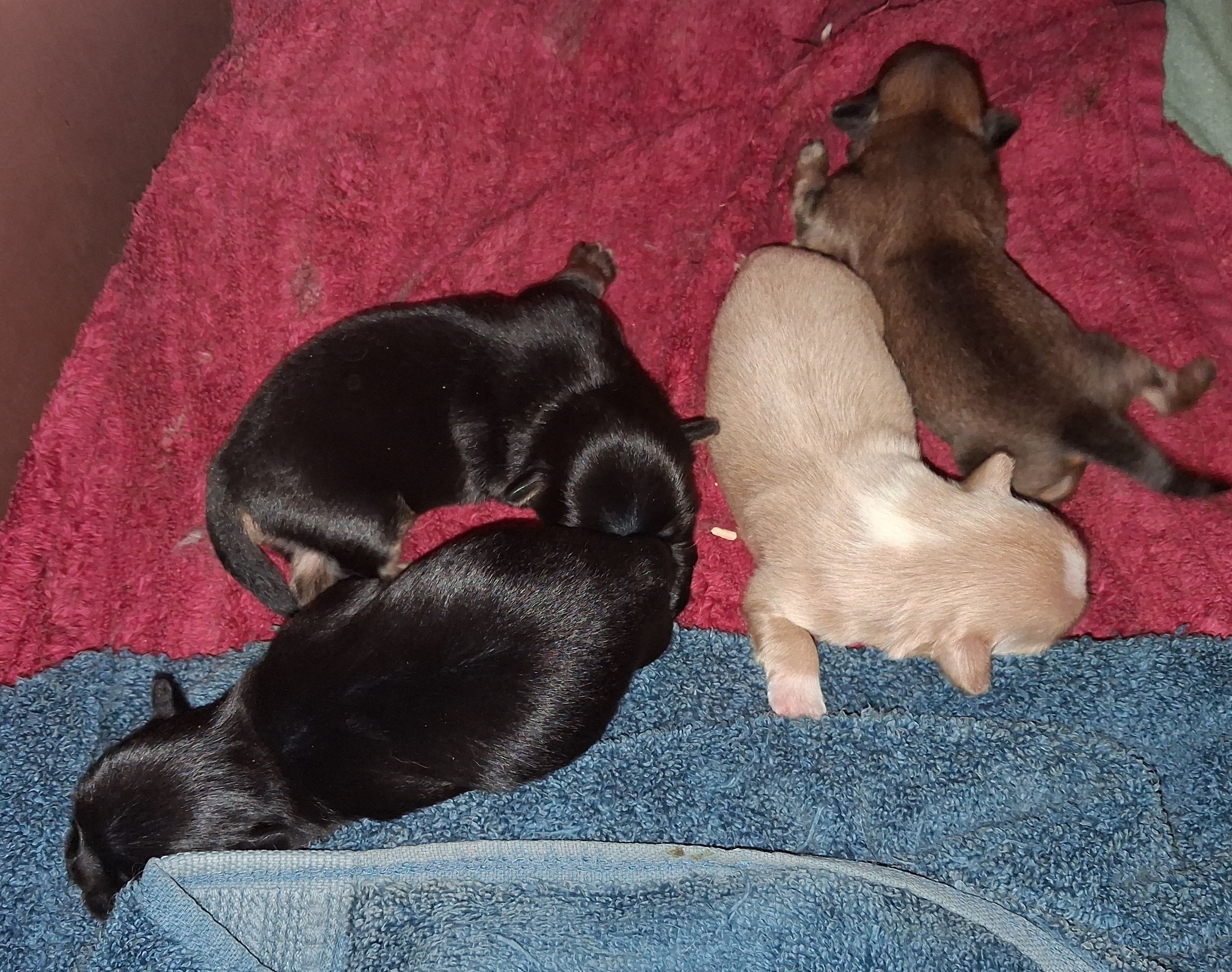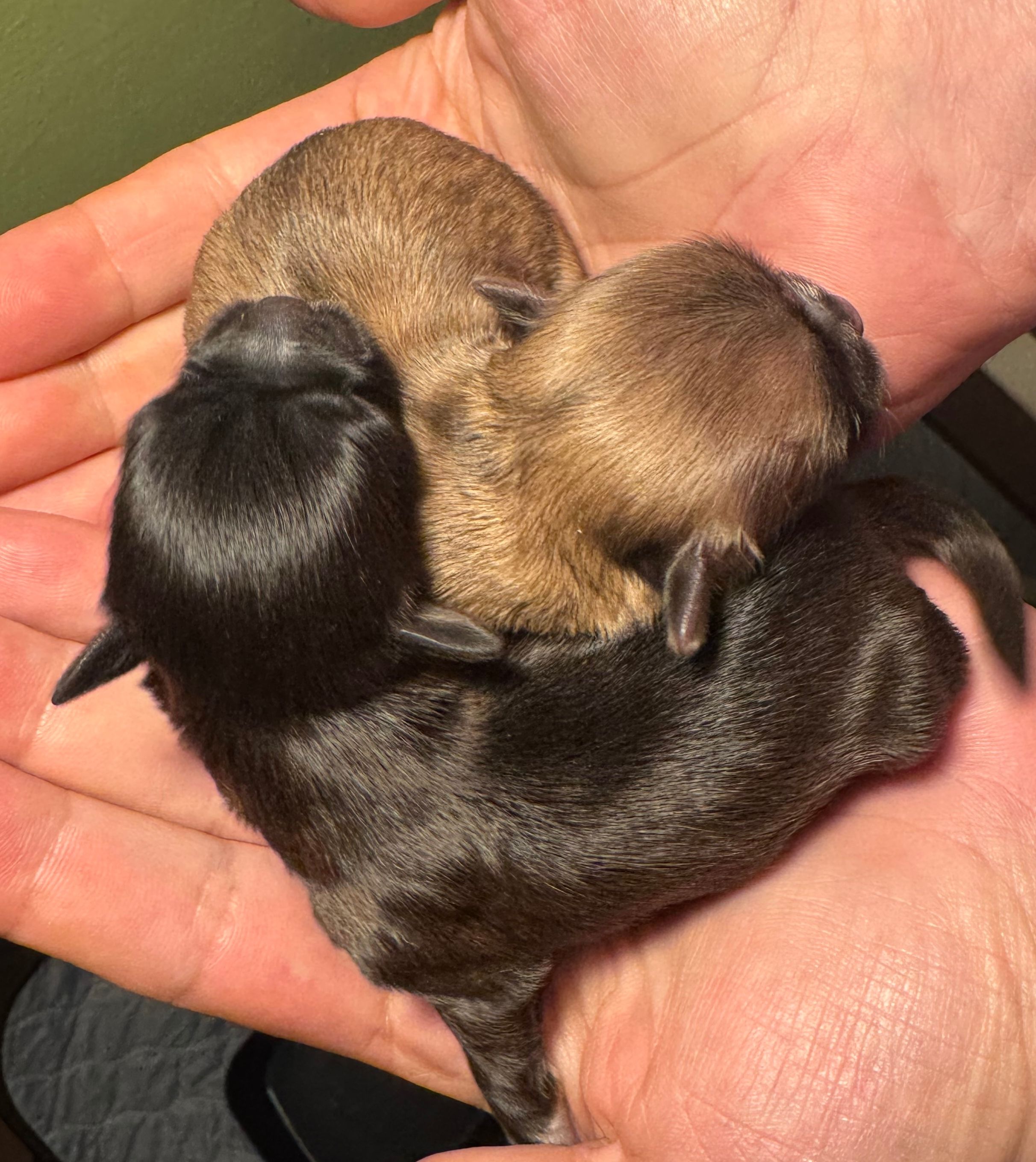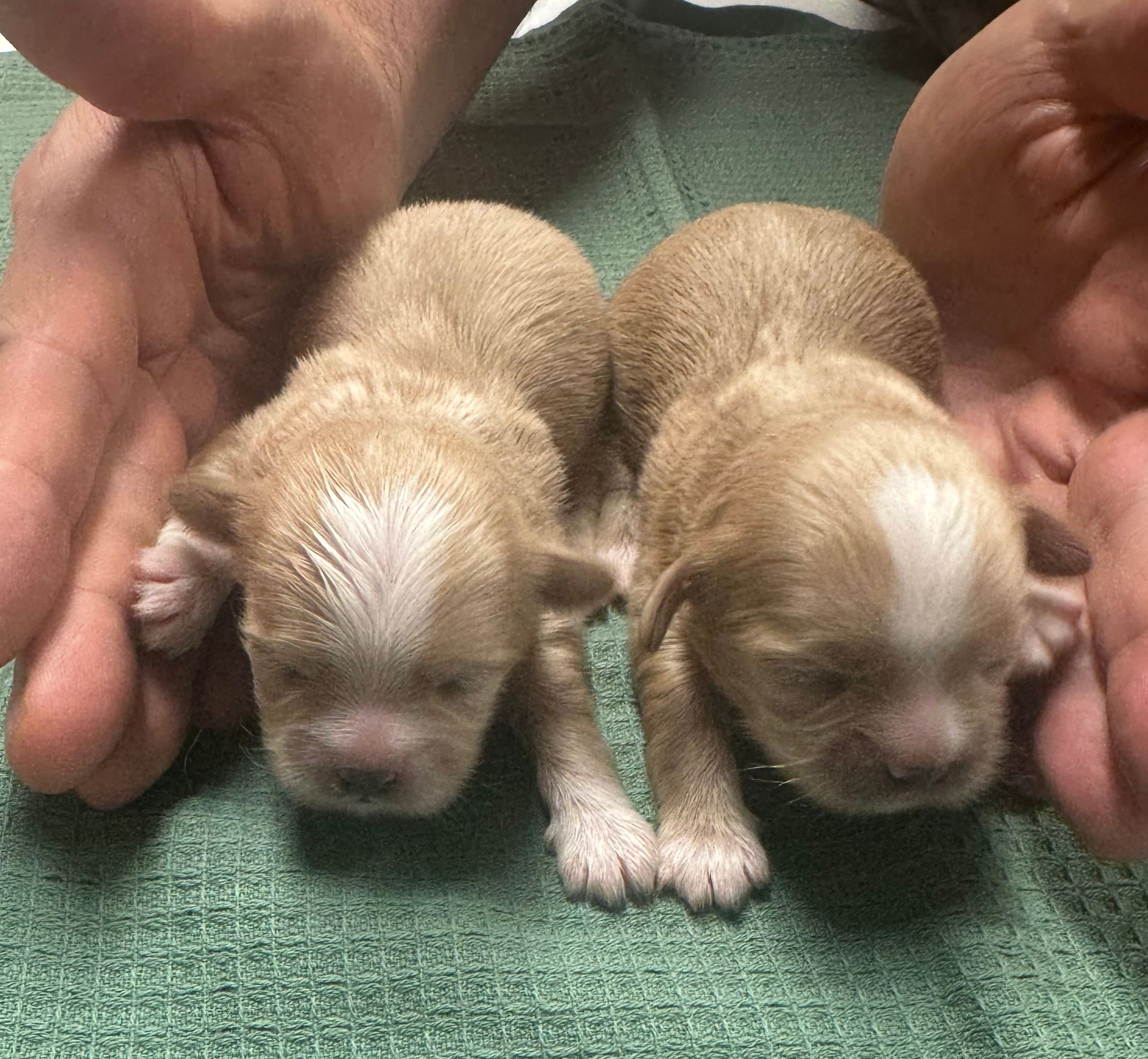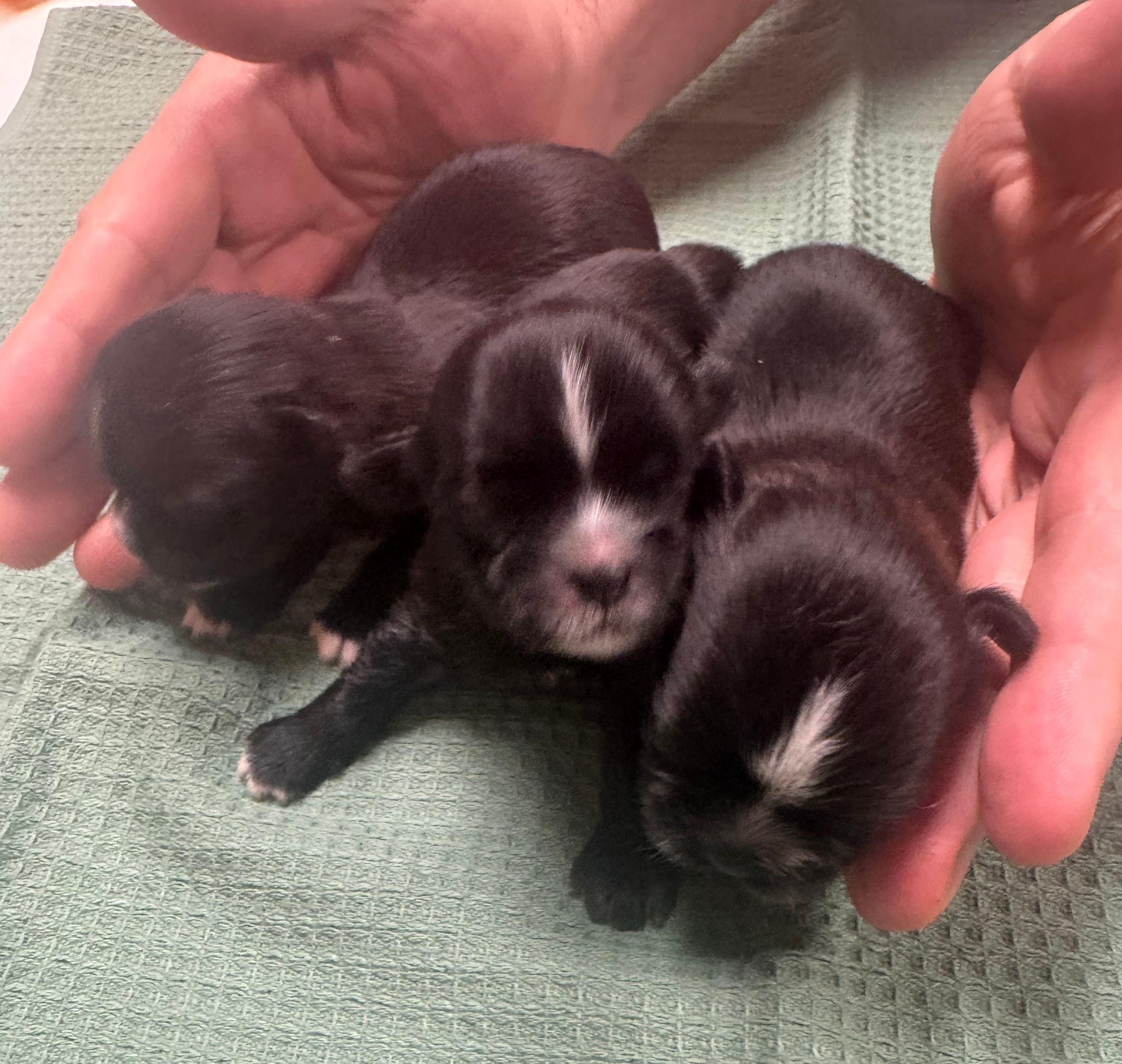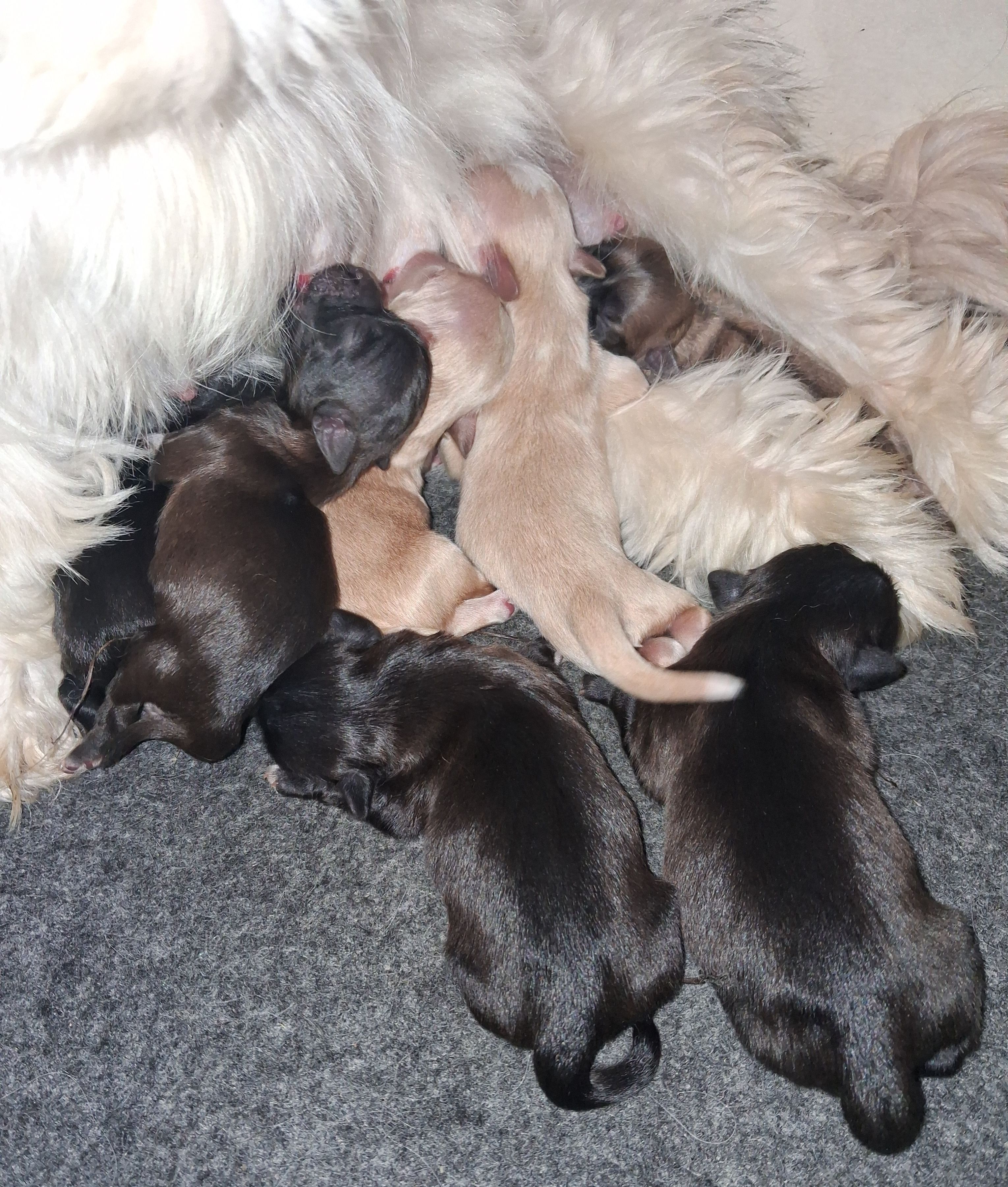 New litter born March 23, 2026. There are 7 puppies total: 2 girls and 5 boys. Individual puppy photos will be added soon when their eyes open.